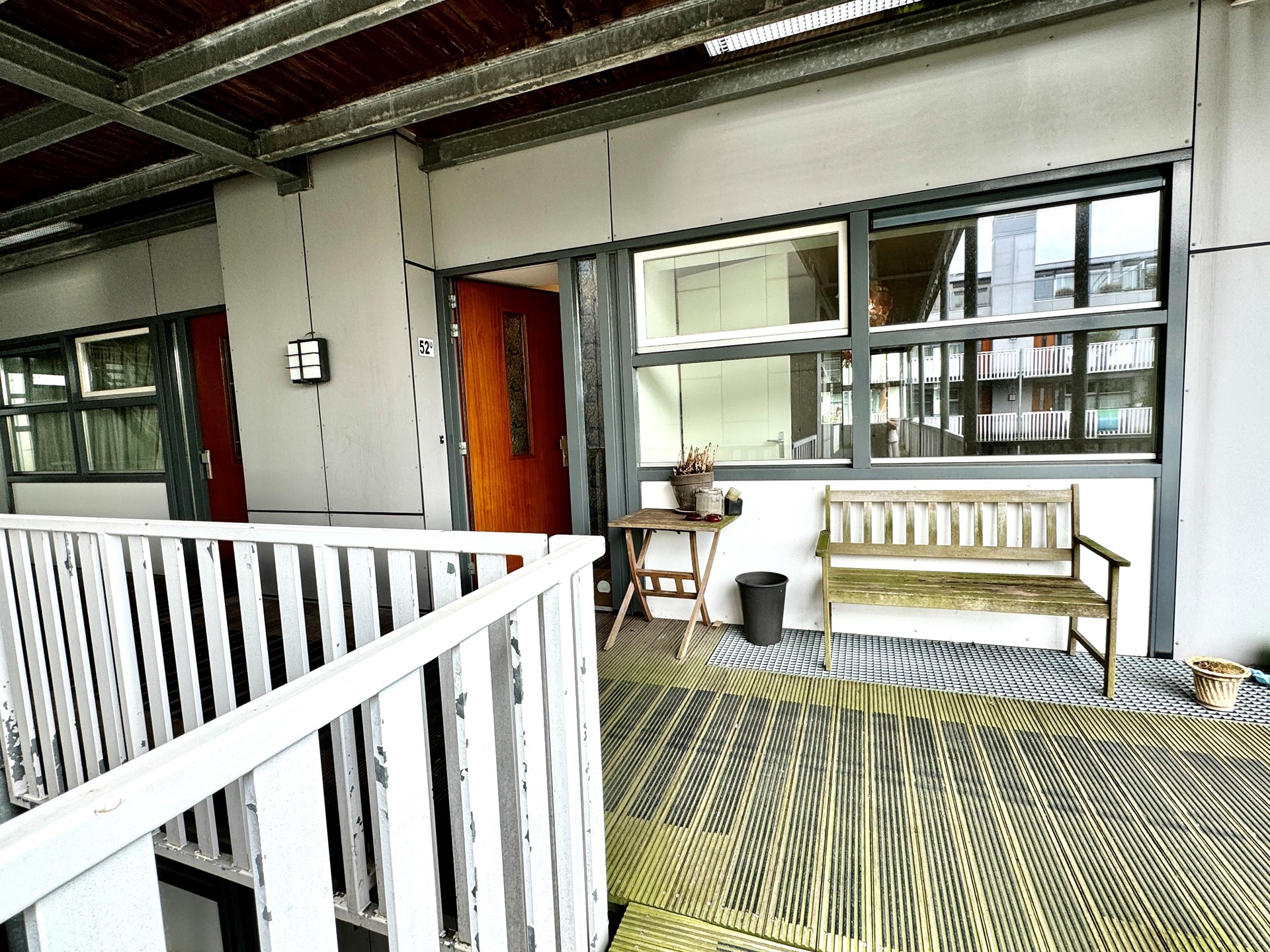 The apartment is on the first floor of the building, accessible via stairs or lift. The building itself has entrances on both van Oldenbarneveldtstraat as well as Frederik Hendrikstraat. Underneath there is a bike parking and a parking space can be rented for an additional monthly fee.